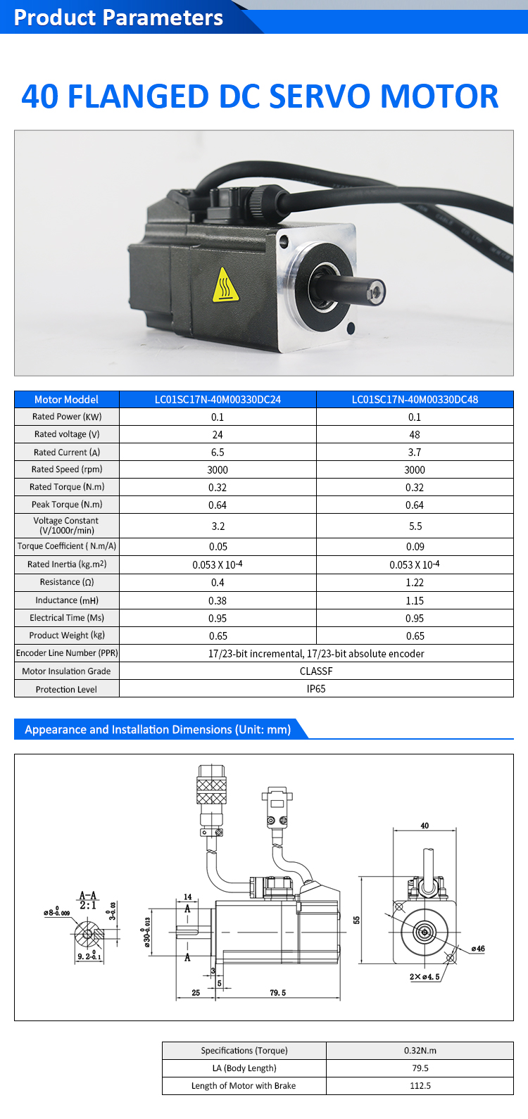 Комплект драйвери за DC серво мотор Pulse/RS485/CANopen/EtherCAT 80 FLANGED 750W ниско напрежение